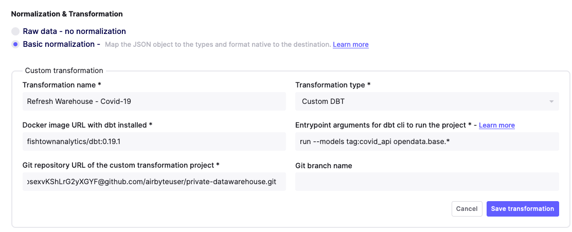 Now, when replications syncs are triggered by Airbyte, my custom transformations from my private git repository are also run at the end!