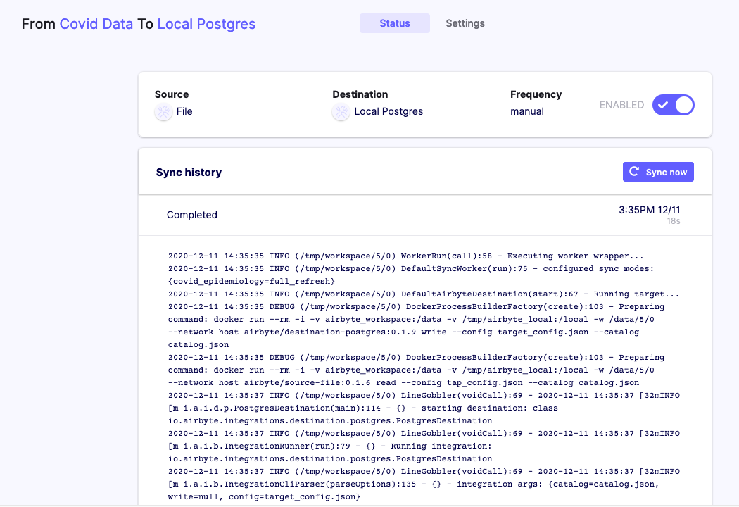 (Optional) Configure some Covid (data) source and Postgres destinations